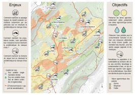 A l’échelle du territoire d’étude le paysage de plateau est ponctué de mares artificielles surnommées « Goyas ». Celles-ci servent à alimenter en eau les abreuvoirs à l’horizon 2050 (26000m3) et ainsi à préserver l’eau potable pour la consommation humaine. Le projet de paysage renforce le caractère culturel de ce paysage en soutenant l’écotourisme (pédagogie liée à la géologie karstique, au patrimoine, à la biodiversité ...).