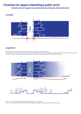 Il était aussi important de bien gérer la transition des espaces publics vers l’espace privé du nouveau Doel. Un travail que réalisent les cellules d’habitation, permettant de loger les habitants durant la période de travaux, mais aussi d’organiser de manière progressive la succession des espaces public/privé.