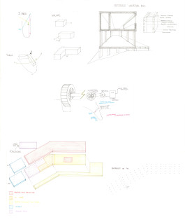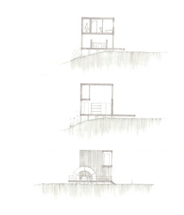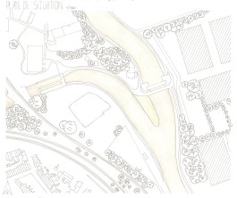 J’ai voulu mettre un lien entre mon bâtiment et le terrain exceptionnel dans lequel il se trouve. C’est pourquoi l’implantation du bâtiment sur la parcelle consiste à respecter un certain axe naturel dans sa longueur. J’ai ensuite profité de la proximité de l’eau pour créer un bief afin d’alimenter un moulin à eau qui apportera l'énergie nécessaire au bâtiment. En suivant ces axes, le bâtiment prend la forme de deux ailes.