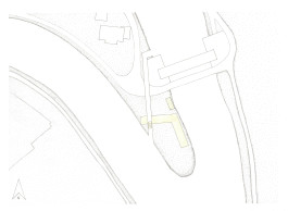 Le bâtiment se trouve légèrement en retrait de la piste cyclable car celle-ci est également bordée d’une écluse faisant plus de 13m de haut. J’ai donc voulu mettre en retrait le bâtiment pour ne pas le mettre en concurrence avec l'écluse et également créer un espace de pause entre la piste cyclable et l'entrée.