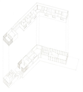 La circulation du bâtiment se fait à l'extérieur grâce à une passerelle surélevée tout comme le bâtiment qui dessert tous les espaces du rez-de-chaussée ; le terrain est laissé sauvage et est végétalisé pour créer une vraie relation avec la nature et permettre aux gens de s'approprier l'espace.