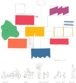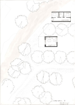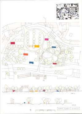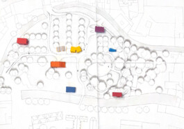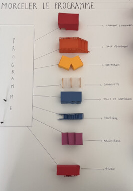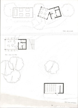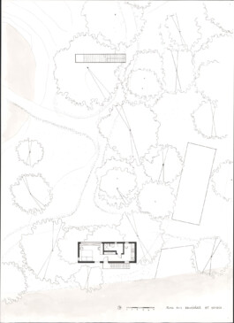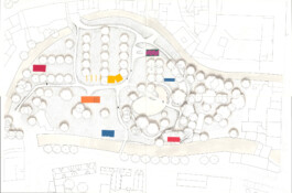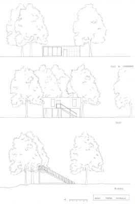 Les 300 mètres carré demandés sont donc explosés en micro-architectures de 50 mètres carrés au sol chacune. On retrouve un restaurant au cœur du parc, lieu de rencontre et de partage. À proximité se trouve une salle d’événement, une salle de conférence, une bibliothèque et un belvédère. Les deux logements (un deux personnes et un studio) sont placés stratégiquement de sorte à être chacun à proximité proche des habitations déjà présentes sur le site, en périphérie du parc.