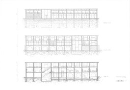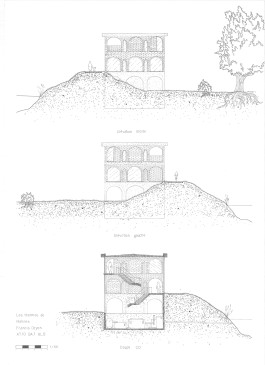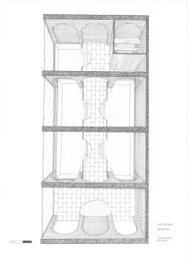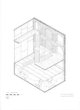 Ces idées sont mises en œuvre par une succession de 10 murs en briques avec des arcs parfois ouverts, parfois fermés, qui suggèrent la présence des thermes en rappelant la forme des aqueducs et créent une trame structurelle dans laquelle se trouvent les différentes pièces du bâtiment.