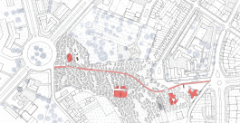 Les accès aux espaces se font à partir de la voie de mobilité douce avec une promenade par des chemins secondaires qui arrivent jusqu’aux clairières. Le futur développement de la friche végétale pourrait s’articuler autour de cette voix. Le projet propose de prolonger la programmation dans deux clairières situées plus bas, un espace dédié au sport comprenant des terrains sportifs, et un autre espace dédié aux loisirs en gardant le parc à chiens existant et en ajoutant des structures de jeux pour les enfants.