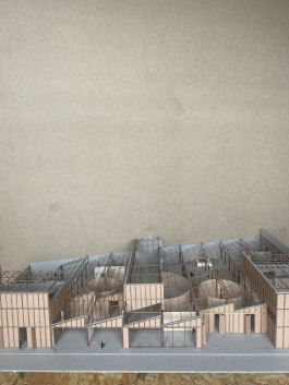 Tout a commencé lors de la phase d’observation, lors de laquelle nous avons, par groupe, analysé l’histoire et la composition parcellaire du site. Cette analyse nous a vite permis de prendre conscience de la qualité que cet îlot bruxellois a à offrir de l’espace au sol. Ceci nous a poussées à explorer le thème de la mitoyenneté,thème découlant de notre étude de site, servant de trame structurante pour le projet. Nous avons ainsi décidé, dans un premier temps, d’y implanter 3 industries plutôt qu’une seule. Ainsi, le projet a découlé d’arrangements à 3.