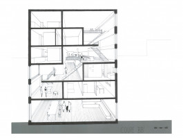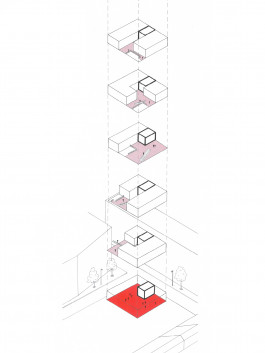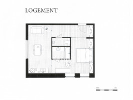 Tous les espaces communs du cohabitat sont orientés principalement vers l’espace minéral extérieur crée. Des logements viennent ensuite prendre place tout autour de la circulation. Le cohabitat possède des logements avec des typologies différentes. Les logements 1 chambre sont conçus avec un noyau central et une circulation en boucle pour créer une dynamique dans le logement.
