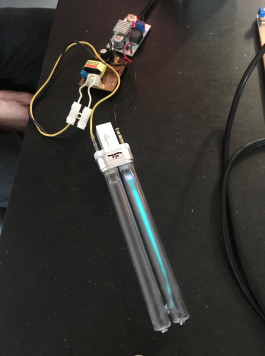 Au stade actuel, nous avons mis en place une hypothèse et un outil expérimental, qui répondent aux critères précédemment évoqués. Pour réaliser cet outil, plusieurs éléments sont nécessaires comme une lampe halogène UV-C (12V 9W), un tube en quartz (30cm), un anneau d’étanchéité (d-5cm), une douille (g23) adaptable pour la lampe et une batterie combinée avec un transformateur de 5V en 12V (voir jusqu’à 20V). L’ensemble reviendrait à un coût estimé à 35 € (hors frais de livraison)