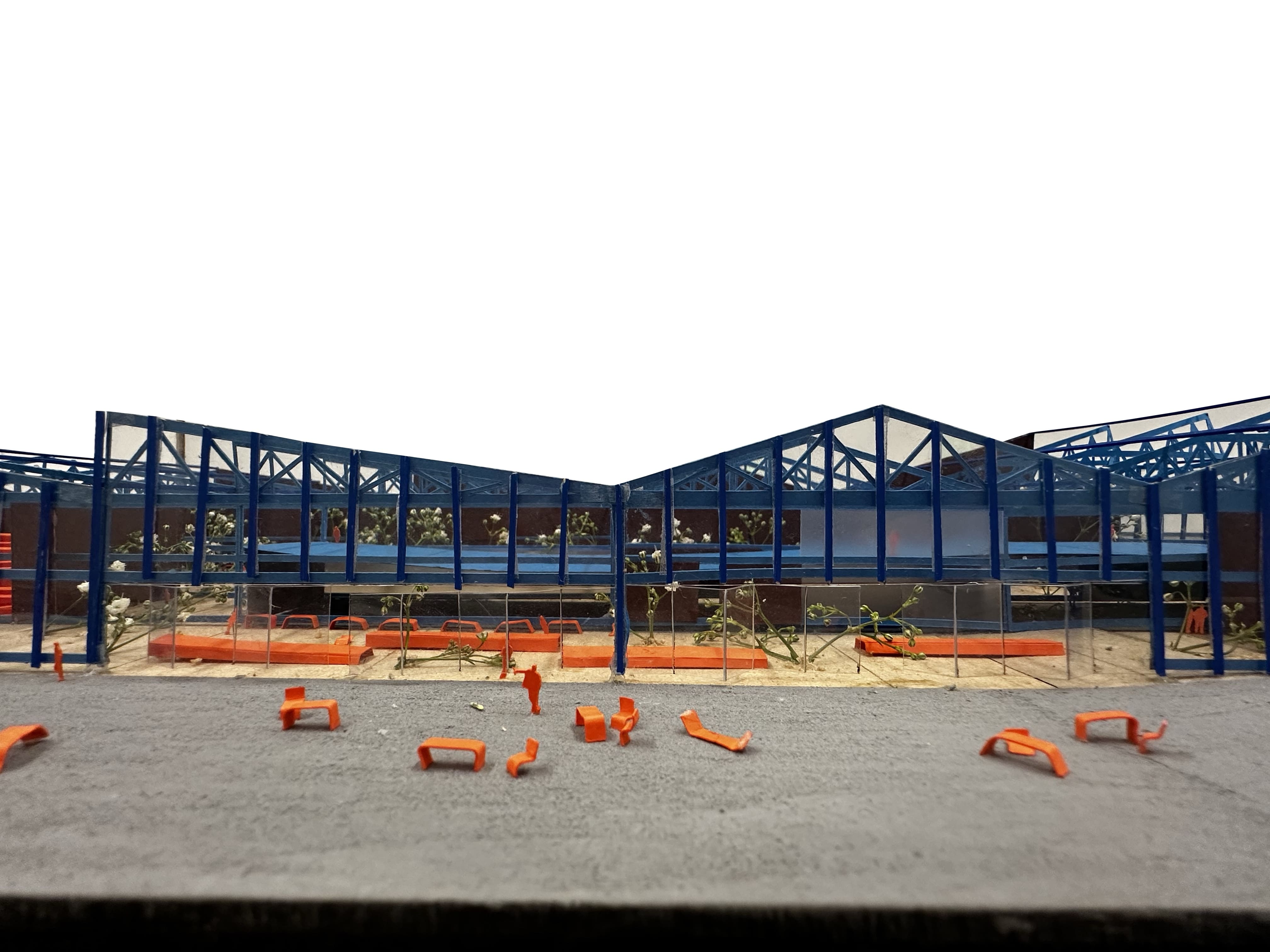 Ce projet architectural se concentre sur une école-serre située à Charleroi, où la cuisine et l’agriculture se rencontrent en une fusion harmonieuse. Il s’agit de concevoir un espace éducatif permettant aux étudiants de maîtriser non seulement l'art culinaire, mais également toutes les étapes qui le précèdent : la culture des aliments, leur traitement, puis leur transformation en mets savoureux.
