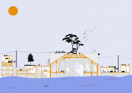Ce projet s’inscrit avant tout dans une réflexion théorique sur le futur de nos villes et plus particulièrement celui d’Alost. Nous pensons qu’une des manières de réfléchir le futur est l’imagination et la propsection, posant ses fondations sur une base scientifique afin d’en extraire de possibles scénarios. Aujourd’hui démunie de sa ferveur révolutionnaire, l’utopie architecturale ne semble plus envisager la tabula rasa comme programme d’exécution mais elle souhaite s’immiscer dans des principes d’interventions sur les sociétés urbaines, dans la résolution de problèmes, parfois même dans la quête d’identité. Elle n’est nulle part mais il est peut-être important de la considérer partout, au cœur des réflexions urbaines, sociales et architecturales. « La conquête du globe épuisant les espaces, l’utopie se projette dans le futur, la fiction ou assume plus clairement l’alternative utopique comme un exercice de raison ». L’utopie apparaît donc comme un ensemble d’aires par excellence de l’expression des possibles. Le projet n’a donc pas pour but d’être réalisé mais il cherche plutôt à frapper l’imagination, d’apporter une réflexion sur un des nombreux potentiels scénarios qu’Alost pourrait connaître. L’Homme est l’espèce qui a eu le plus gros impact sur l’environnement en 200 ans là où les ères géologiques s’étalent historiquement sur quelques millions d’années, les changements climatiques sont donc rapides et conséquents. En lisant certaines recherches scientifiques, le taux de co2 dans l’atmosphère a battu un record anciennement atteint il y a 3 millions d’années. L’augmentation de la température nous mènerait alors à regarder la disposition des océans il y a 5 millions d’années comme étant la prochaine réorganisation des territoires mondiaux. Si l’on s’accorde à ces recherches, la majorité du territoire belge, dont Alost, se verrait inondée de toute part. De plus, les situations géographiques et topographiques font d’Alost, qui est situé au creux de plusieurs vallées, une zone tout particulièrement inondable. Il est donc nécessaire de réinterroger les besoins primaires de l’Homme : Comment cultiver ? Comment habiter ? Comment circuler ? Comment recréer du lien sur un sol que nous ne connaissons plus ? Comment faire communauté ?