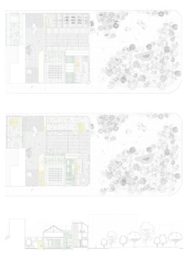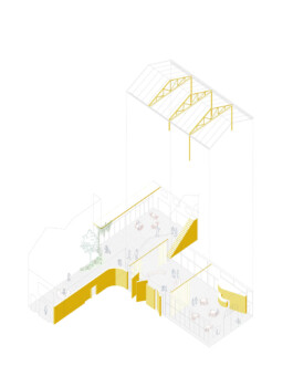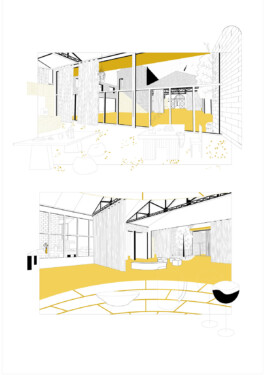 Les interventions de démontage seront réalisées de manière sélective afin de préserver l’état des différents matériaux et de permettre leur réemploi dans le cadre du projet. Créant des perspectives nouvelles et une circulation en T qui ouvrira le cœur de l’îlot vers le quartier, invitant ainsi les passants à découvrir ce nouvel espace.