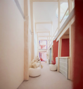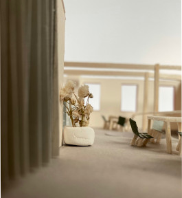 Des recherches permettent d’observer que 17% de la population louvaniste a plus de 65 ans. Ce groupe est particulièrement vulnérable à l’isolement social et à la perte d’autonomie, situation qui a été exacerbée par la crise sanitaire de 2020 et 2021. Ces réflexions appuient l’importance d’une revalorisation du Care dans nos villes contemporaines occidentales. Le projet se veut inclusif et propose une approche par le Care à destination des personnes âgées de Louvain, et ce au travers de l’intégration de cette dimension plus sensible et inclusive dans une programmation liée au Cure. En effet, l’étude plus large de Louvain a permis de constater une séparation entre les réseaux du cure et du care dans la ville. Les premiers sont concentrés dans des hopitaux et centres médicaux, les seconds sont plus éparses dans la ville, reprenant les planning familiaux, les structures gériatriques et les crèches par exemple. La programmation hybride proposée par le projet tente de dresser un pont entre ces deux domaines, trop souvent dissociés. Ainsi, il est proposé de créer une structure accueillant deux cabinets médicaux, purement liés au cure, associés à une programmation de petite restauration à destination des patient.e.s et leurs accompagnant.e.s ainsi qu’une salle polyvalente pouvant recevoir diverses activités liées au bien-être et aux échanges sociaux. Une attention a été portée au respect de l’intimité des cabinets, ainsi qu’aux échanges possibles entre les différentes fonctions reprises dans le programme, le projet se veut sensible des utilisateur.trice.s et se voit intégré de mobilier adapté et inclusif. La parcelle choisie se situe tout au nord du Petit Béguinage, certains choix formels et structurels ont pour ambition de s’inscrire dans la continuité du béguinage ou d’en faire une interprétation plus contemporaine. Ainsi, les usages de la brique et de la structure en bois se voient réappropriées.