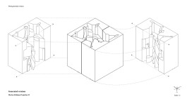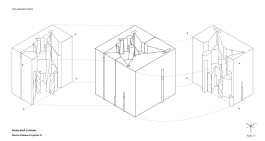 L’interprétation de ce morceau dans l’espace d’un cube suit la même logique de composition. Chaque instrument est représenté par une géométrie différente et est caractérisé par 3 tons. Chaque ton comporte une zone fixe sur l'axe Z (la hauteur) et est positionné dans cette zone en fonction de la dynamique et de l’intensité de la musique. La durée est représenté par l'épaisseur de la forme géométrique. Ainsi, en fonction du ton et de la durée, les « instruments » viendront pénétrer le cube et créer différents points dans cet espace. Représentées en négatif, les intersections de ces points créent les 3 zones de tonalité, et témoignent de la dimension de libre interprétation du morceau.