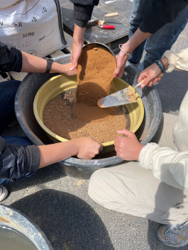 This training adopted the form of a ULB Summer School, thus making it accessible to an international audience. We have welcomed a fantastic group of about 30 participants, including students as well as professionals, joining us from all over Europe and as far away as Georgia, the United Arab Emirates, and the US! The tutors on BC's side were Jasper Van der Linden and Bregt Hoppenbrouwers (introduction and blocks masonry). They were joined by Austria-based Belgian engineer Arnaud Evrard (rammed earth) and our alumna Arianna Fabrizi (plasters). Supporting lectures have been kindly provided by our PhD researcher Gaëlle Faguet (compressed earth blocks in Mayotte) and Mathieu Tamaillon from Paris-based Cycle Terre cooperative.