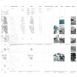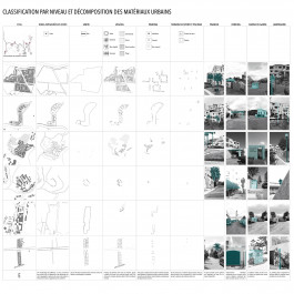 L’analyse de la ville linéaire du Grand Tétouan s’est basé sur une approche analytique de la notion de matériaux urbains. Le territoire a été divisé en douze zones d’études, et par la suite nous avons établi un vocabulaire commun des différents matériaux urbains composant ces zones, en fonction du niveau de lecture défini. La zone de Cabo Negro présente des caractéristiques configurationnelles particulières, car elle est  caractérisée par des enclaves, ainsi que de deux autres matériaux. Des analyses topographiques et descriptives relatives aux types d’opérations ont précédé la création d’une grille d’analyse. Cette grille est une classification par niveau et une décomposition des matériaux urbains, elle décompose chaque matériau pour pouvoir ainsi comparer leurs caractéristiques morphologiques.