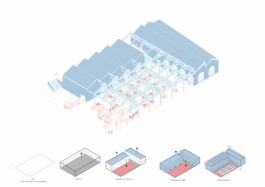 À partir d’un ancien bâtiment industriel abandonné émerge l’idée de réhabiliter la structure pour en faire un centre agricole communautaire. Celui-ci s’élève sur deux niveaux avec un étage dit « propre » et un étage de production. Le centre dispose aussi d’un système de bacs d’horticulture qui permet de créer une circulation fluide et le passage de petits véhicules. Ces circulations génèrent également des espaces de repos au sein du centre agricole. Enfin, un réseau de circulation d’eau, des dispositifs de récupération des eaux et des citernes sont intégrés pour exploiter le cours d’eau de la Vesdre, récupérer et stocker l’eau, ainsi que subvenir aux besoins en eau durant les périodes de sécheresse.