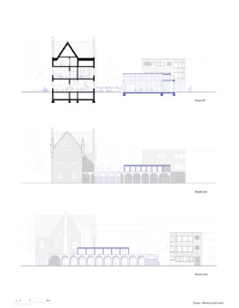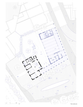 La maison des jeunes sera relocalisée dans un bâtiment style renaissance Flamande présent sur le site, libérant ainsi l’espace pour une nouvelle salle des fêtes, entourée d'une galerie en arcade. Un jardin privé sera créé pour les usagers, tandis que la maison sociale sera légèrement réhabilitée pour accueillir la maison des jeunes. La galerie reliant les deux programmes permet aussi de créer un filtre entre la salle des fêtes et la nouvelle place.